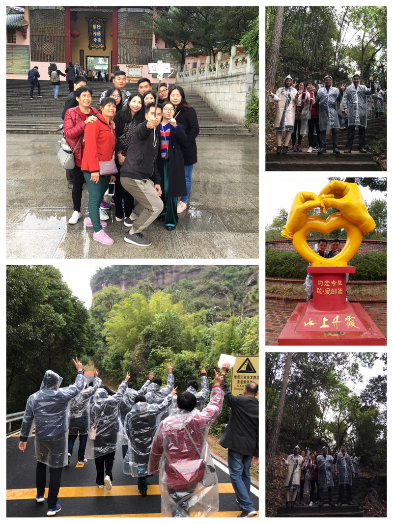 再來(lái)到著名丹霞山。古語(yǔ)有言“桂林山水甲全國(guó),不及廣東一丹霞,色如渥丹、燦如明霞?!鄙仃P(guān)丹霞山,一直是公司小伙伴們期待已久的游覽地點(diǎn)。其中,長(zhǎng)老峰是丹霞山的主峰之一,雖然天空下著朦朧細(xì)雨,但絲毫不影響同事們的熱情,大家冒著風(fēng)雨登上長(zhǎng)老峰,感受了一番“一覽眾山小”,堅(jiān)持就是勝利,這大概就是不畏艱苦爬上頂峰的優(yōu)越感吧。