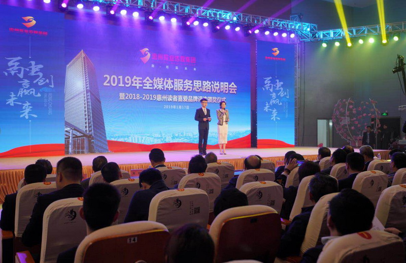 一元復(fù)始,萬象更新。2019年1月17日下午3點,惠州報業(yè)傳媒集團2019年全媒體服務(wù)思路說明會暨“2018-2019惠州讀者喜愛品牌評選”頒獎活動隆重舉行。來自惠州市機關(guān)團隊、教育、金融、醫(yī)療、房地產(chǎn)、汽車、商業(yè)、家居、旅游等各行各業(yè)的領(lǐng)頭羊和精英代表齊聚惠州報業(yè)傳媒集團全媒體基地,共同見證這一全市矚目、大咖云集的盛事。